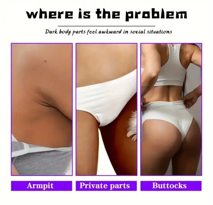 Cream for radiance on inner tights, private areas, and underarms, brightens buttocks and knees, intimate dark skin care for tone balancing