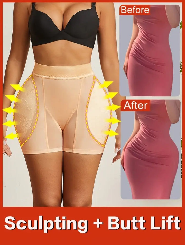 Ladies' Shaping Shorts with Fake Buttocks for Enhancing Curves, High-Waisted Tummy Control Underwear with Removable Sponge Pads, Comfortable Body-Shaping Bodysuit for a Slim And Attractive Figure