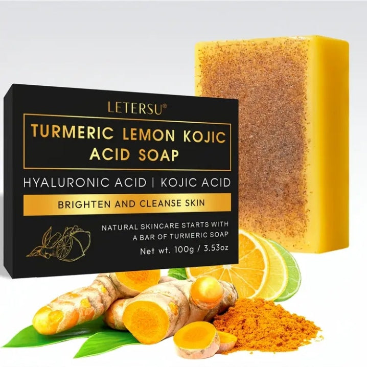 Turmeric & Lemon Brightening Kojic Acid Soap - Handmade Double-Effect Foaming Bars with Foaming Net, Deep Cleansing & Moisturizing Suitable for Types, Hyperpigmentation, Men & Women Soap