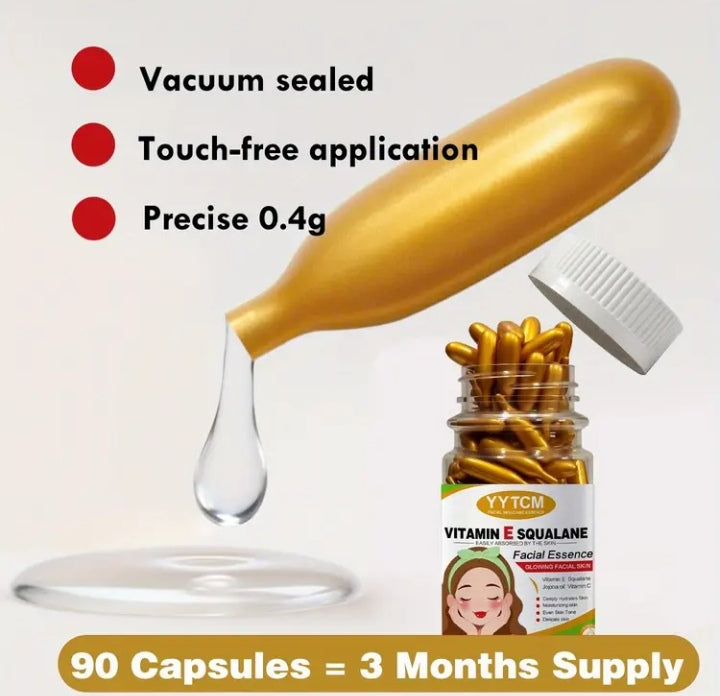 Vitamin E Deep hydration Capsules serum, Moisturizing and smoothing skin with plant squalane & Vitamin C, 0.4g×90 Capsules / Bottle. 1 bottle with plant squalane